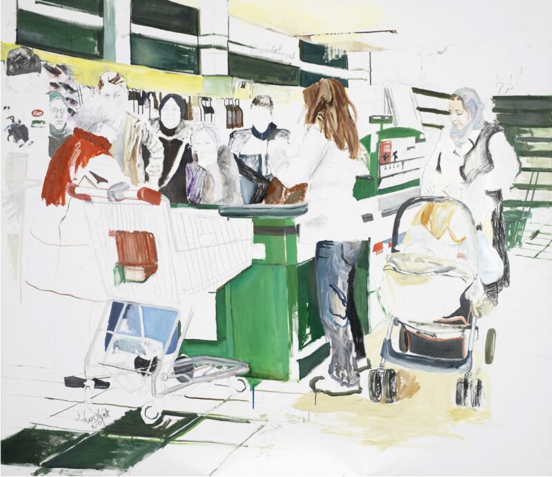 Die großformatigen Gemälde von Kim Corbisier (Anderlecht/BE 1985–2012 Wien) scheinen auf den ersten Blick unvollendet, und dennoch erzeugen sie den Eindruck, dass kurze Momente der hektischen Alltagswelt treffend festgehalten sind. Zu sehen sind keine idyllischen, perfekten Szenen oder gar zwischenmenschliche Begegnungen, vielmehr fokussiert die Künstlerin auf die Eintönigkeit des Alltags, den Mangel an Mitgefühl und Interesse sowie ins Abseits geratene, entfremdete, einsame Menschen. Ihre Sicht auf komplexe Zusammenhänge und allzu oft übersehene Details kommt in Kim Corbisiers Bildern, Fotos und Videos zum Ausdruck. Darüber hinaus war die Künstlerin auch als Amateurschauspielerin tätig – etwa als Protagonistin in György Pálfis preisgekröntem Film Ich bin nicht dein Freund aus dem Jahr 2009. Als scharfsinnige und außergewöhnlich sensible Beobachterin ihrer Umgebung machten ihr jedoch viele Ungerechtigkeiten und Probleme der Gesellschaft zu schaffen. Kim Corbisiers Arbeiten zeugen von einer eigenständigen Malweise und sind geprägt von starker Dynamik, die aus dem Zusammenspiel von zarten, skizzenhaften Linien, feinem Aquarell und kräftiger Ölfarbe entsteht. Zum Zeitpunkt ihrer Auszeichnung mit dem STRABAG Artaward befand sich die junge, äußerst talentierte und vielseitige Künstlerin am Beginn einer vielversprechenden Karriere, die nur fünf Monate nach der Eröffnung ihrer Einzelausstellung in der STRABAG Artlounge ein tragisches und viel zu jähes Ende fand.