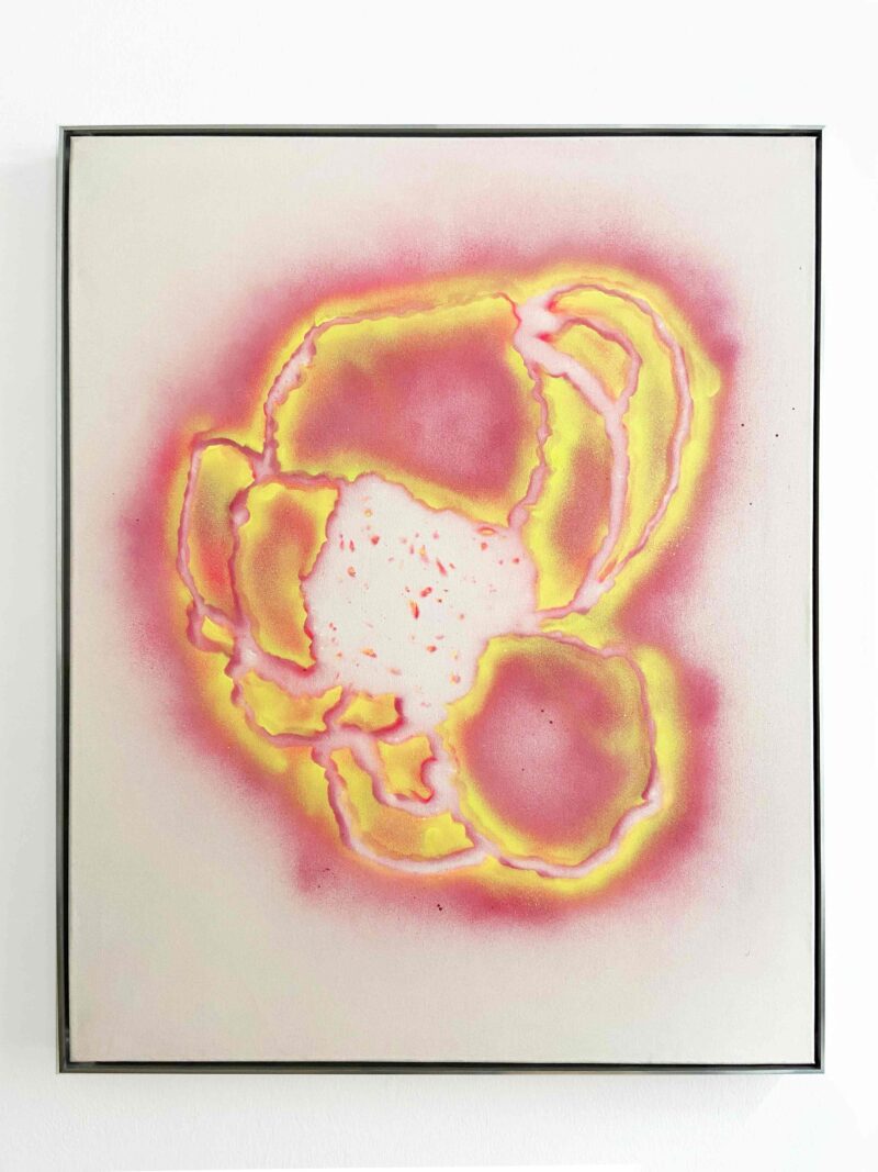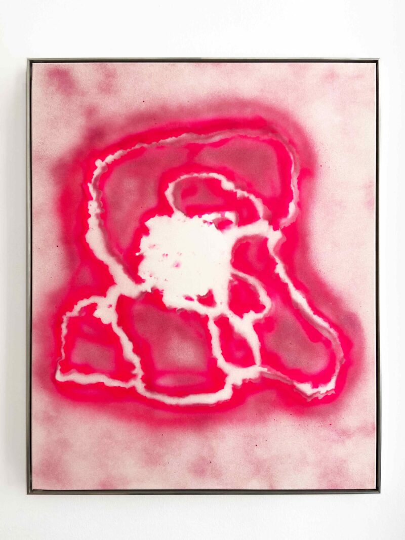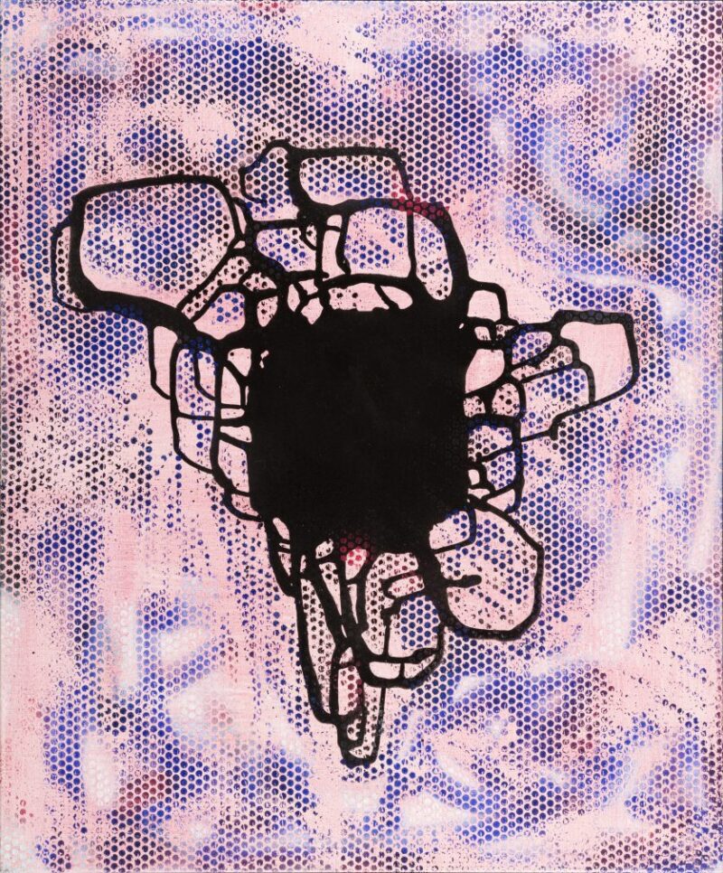 Ohne TitelSali Ölhafen (Innsbruck 1959) beschäftigt sich seit vielen Jahren mit dem Thema Form, wobei ihr Ausgangspunkt stets eine zentrale Form auf der Bildfläche ist, die von mehreren verschiedenen Schichten überlagert oder unterlegt wird. Für Ölhafen stellt die Form eine Synthese zwischen Chaos und Ordnung dar. In ihren Arbeiten verwendet die Künstlerin so vielfältige Materialien wie etwa Lack, Acryl, Grafit, Tusche, Leinen, Kunststoff und Aluminium, aber auch Zeitungspapier und Luftpolsterfolie, deren gleichmäßige Rasterung der Bildoberfläche Struktur verleiht. Das herangezogene Zeitungsmaterial birgt allgegenwärtiges Weltgeschehen in sich, Ölhafen überlagert dies jedoch mit zahlreichen Farbschichten. 1998 erhielt Sali Ölhafen einen Bauholding Kunstförderpreis, den Vorgänger des STRABAG Artaward.