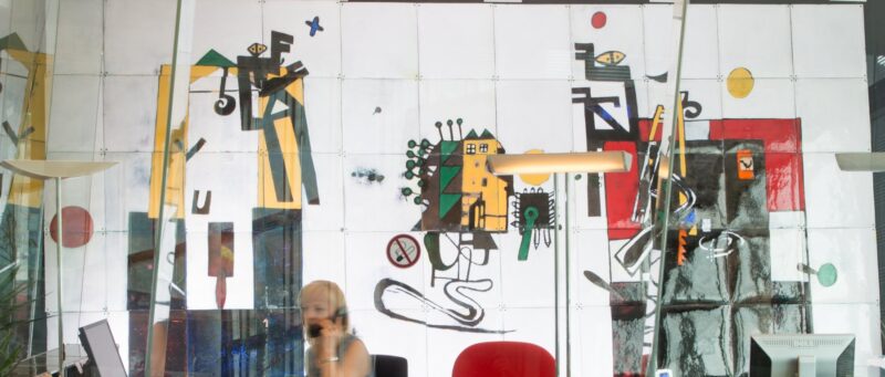 Haus des CondorsGiselbert Hoke (Warnsdorf/Bohemia 1927-2015 Klagenfurt) is considered a master of monumental painting and a major representative of Austrian post-war modernism. His multi-layered oeuvre, which includes paintings, prints, frescoes, enamel and glass walls, initially focused on large-scale mural designs, huge nudes and portraits of women. On numerous journeys through remote, unspoiled regions of Peru and Spain and stays at his Tuscan summer domicile, Hoke internalized the motifs of his later landscape painting with its characteristic monochrome surfaces, which he continued to reduce until his death. In addition to numerous paintings and graphic works by the artist, the STRABAG Artcollection includes two monumental enamel walls (The Builders), which are installed in the entrées of the Group's buildings in Spittal/Drau and Cologne.