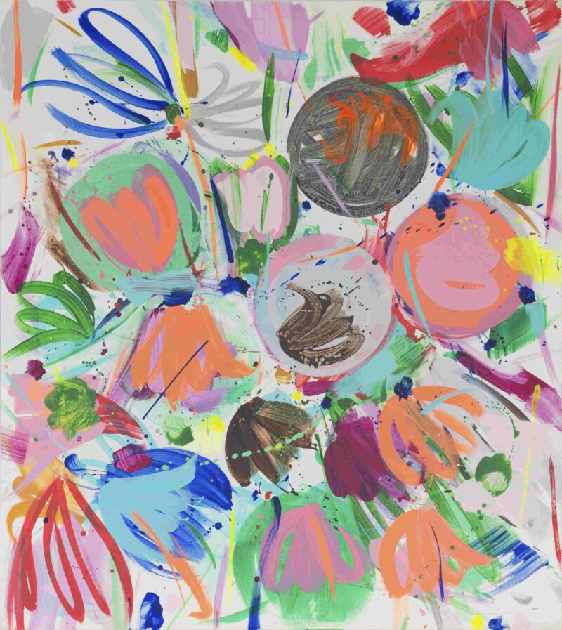 Blumenwiese Nr. 26Vienna-based South Korean-born Miye Lee (Jeonju/South Korea 1970) creates light, positive imagery on mostly square canvases that harken back to traditional Korean art and coloring. Open, unprimed surfaces contrast with dynamically applied paint. In earlier works, the artist used a muted color scheme. Today, brightly intense circular formations and sometimes boldly and emotionally placed brushstrokes or splashes of color combine to create an abstract, gestural painting that is timeless, clear and poetic. Miye Lee, who studied with Christian Ludwig Attersee at the University of Applied Arts Vienna, received a recognition award from the Bauholding Kunstförderpreis, the predecessor of the STRABAG Artaward, in 1999.