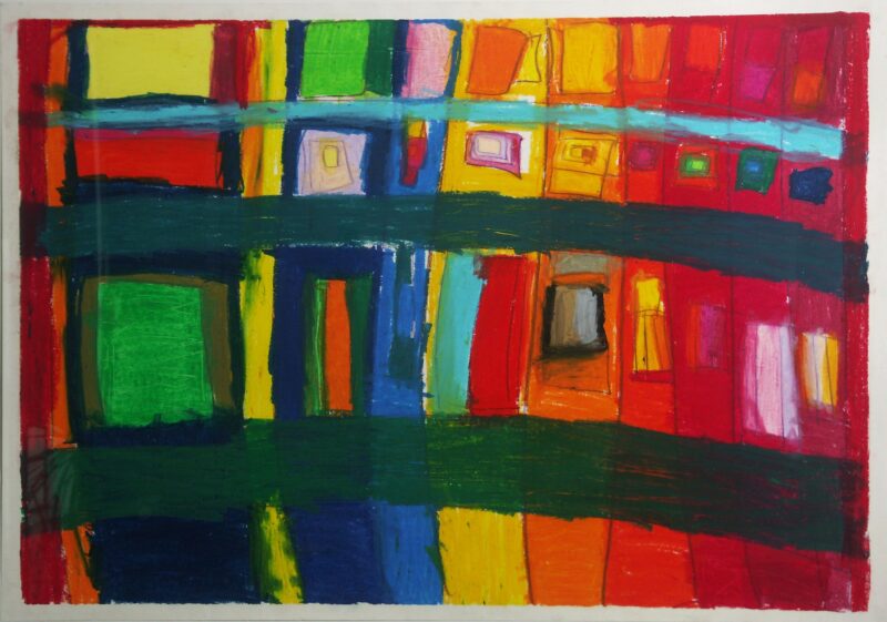 Peter Smoley (1962) is a member of the Art Workshop de La Tour in Treffen near Villach. It is one of the oldest studios in Austria where visually talented and creative people with special needs can develop and establish themselves as artists. The spot of color and it’s fit into a vivid figure-ground network is at the forefront of Smoley's work. His dynamic, fiercely agitated method of painting with oil pastels provides a remotely effective color scheme that identifies the artist as distinctly color dominant.