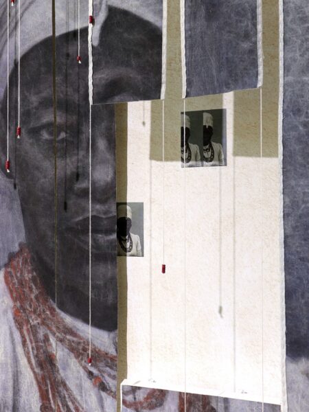 Ihr künstlerisches Schaffen bewegt sich zwischen (Zer-)Störung und Fürsorge: Thiam greift in Bilder ein, um die Narben kolonialer Geschichte freizulegen; mit Nadel und Faden fügt sie das, was einst herausgerissen wurde, wieder zu einem Ganzen. In diesem materiellen Dialog stellt sich eine zentrale Frage: Wer sind wir ‐ bevor wir zerbrechen oder angesichts der Ruinen?