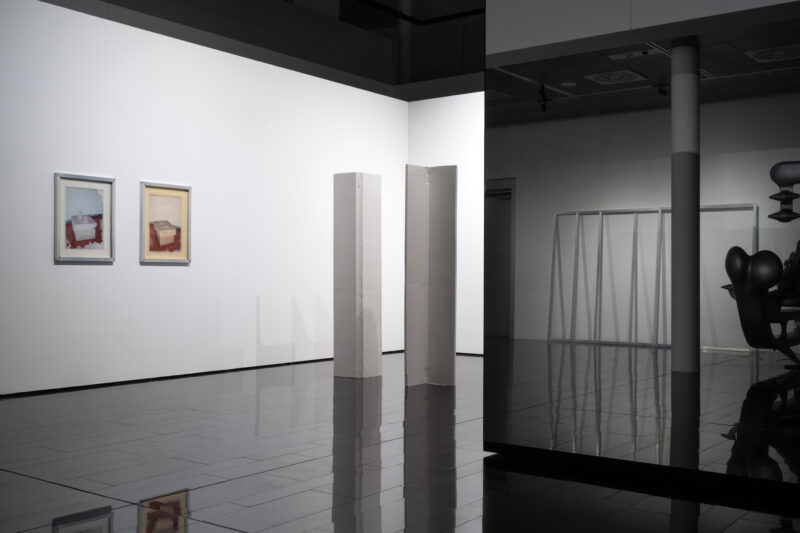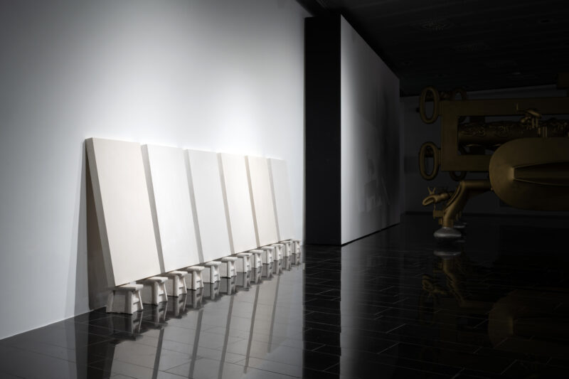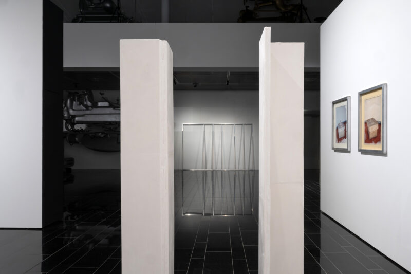 Die STRABAG ART Site wird so selbst zu einem Bildraum, in dem Werke und vorhandene Architektur in einer kompositorischen Struktur miteinander verwoben sind. Ausgehend von der Architektur der Räumlichkeiten und den dort permanent installierten Werken von Bruno Gironcoli komponiert Hummerhielm Carlén die Stellwände, Skulpturen und Wachs-Arbeiten in einem erweiterten malerischen Prozess zu einem Gesamtbild.